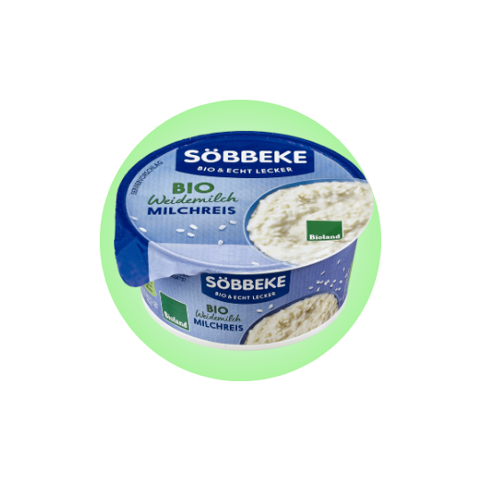 Bio Milchreis Söbbeke – Dieser Bio Milchreis überzeugt mit einer unvergleichlichen Cremigkeit und einen einzigartigen milchig-frischen Geschmack. Er passt perfekt pur als Zwischensnack, am besten mit einer bunten Hand voll Bio Obst.
